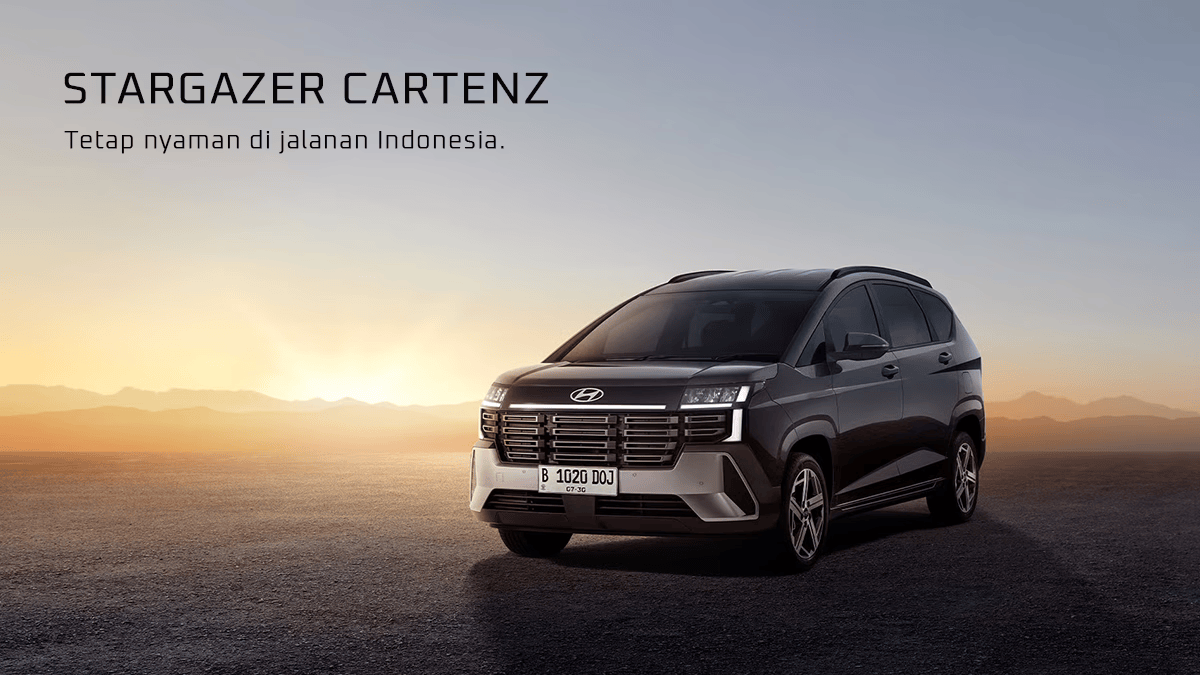 Hyundai Stargazer Cartenz hadir sebagai kendaraan MPV yang dirancang khusus untuk mendukung mobilitas keluarga di Indonesia. Tampilannya mengusung desain eksterior yang lebih kokoh dan maskulin dengan siluet two box yang solid, dilengkapi dengan wheel-base terpanjang di kelasnya. Aksen tambahan seperti roof rail memberikan kesan tangguh, sementara lampu belakang LED berbentuk ‘H’ yang khas menjadikannya mudah dikenali dan memberikan presensi yang kuat di jalanan.